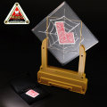 「TVカード」がDPGシリーズに!「あの強力なメカがプラスチック素材で大丈夫?」と心配な方へ… ご安心ください。当社が発案したギミックは、丈夫でカードの種類によって出現する場所の微調整まで可能な最高のアイディアで製作されました。通常、「TVカード」はテーブルの上(用具を垂直に置いて)で操作しないと、うまく作動しませんが、本製品は、手に持った状態でも100%の信頼度でカードが出現します。「バイスクル」(D080X)や「ナビゲーター」(D000X他)等、普通のポーカーサイズカードをお使いください(ブリッジサイズも可)。【手順の概略】2枚の透明板をスタンドに立てておきます(高さ:35cm)。そして、お客様が選んだカードが付属の「DPG ネオジウムカードボックス」から消え、突然透明板の間に現れます。選んだカードを破いてもらい、お客様に預けた1片と、出現した欠けたカードがピタリ一致するといった演出も解説してあります。カードのセットも超簡単な最高級「TVカード」がこの価格で買えるなんて…!(トランプ別売・組立式)