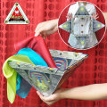 「ピラミッド」は、古典的なプロダクションマジックです。真四角の枠に取り付けられた4枚の三角形の板を軽快なテンポで表裏を完全に改めます。そして、ピラミッド型に組み立て、中からシルクやバネ花(P5501他)、万国旗(S5101/S5112他)を多数出現させることができます。過去の「ピラミッド」は、値段が高い、デザインが無い、板の回転部分にばらつきがある、重い等、多くの問題がありました。「DPG ピラミッド(ツタンカーメン)」は、過去の製品とは別次元の出来栄えです。何とデザインは、ピラミッドそのものをベースに、色鮮やかなツタンカーメンを配し、大きさは24cm角の太いワイヤーに高さ20cmもある三角板を取り付け、広げた時のサイズは、縦・横64cmと今までより一回り大きい反面、畳むと24cm角のコンパクトサイズ、重さ約200gと軽量です。これなら、ピラミッドのフラリッシュ(曲芸)も取り入れて、サロンばかりでなく、大きなステージでも迫力十分!姉妹品の和風演技にピッタリの「DPGピラミッド(浮世絵)」(K1133)の覧も是非ご覧下さい。(取出用品別売・ 組立式)