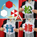 古典トリックに新アイディアを加味することで、本当に素晴らしいおめでたトリックに生まれ変わった・・・それが「DPGヘキサゴン(松竹梅)」です。お正月や結婚式をはじめ各種祝いの席で是非演じたいマジック!赤・白・紅白、そして松・竹・梅と1枚のシートが魔法のようにクルクルと変化します。マジシャンは「本日はおめでたい品をお持ちしました」と六角形(直径約27cm)のシートを見せます。シートは全面が赤ですが、ちょっと畳んで広げると、ナント、全面白に変化します。再び畳んで広げると、今度は紅白交互の模様に・・・ これだけでもビックリなのに再度、畳んで広げると、全面に大きく「松」の字が現れます!同様にして続けると、「竹」の字・「梅」の字が現れるのです。演出の台詞の例まで解説したわかりやすい説明書付きです!この「DPGヘキサゴン(松竹梅)」の他に、「動物」(K5339)・「マジシャン」(K5341)・「クリスマス」(K5343)、さらに「4種セット」(K5404)、特製トランプの付いた「マジシャン(特製トランプ付)」(K5342)と豊富なラインナップとなっています。(組立式)