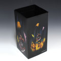 黒地に炎の中で不気味に笑うデビルをデザインした厚紙製の四角いチューブ(縦・横11cm・高さ22cm)です。マジシャンはチューブの中をよく見せ、腕を通して中が完全にカラなことを確認してから「シルク」(S180X他)やリボン、「特上ミニチュア万国旗」(S5112)、更に各種「デザインシルク」(S8533他)・「のべシルク」(S811X他)・薄手の「楠玉」(P5310他)・「ジャグリング用スカーフ」(J1121)等を取り出して見せます。最もやさしいシステムのポピュラーなプロダクションマジックですが、クールに演じるマジシャンにも違和感なく使用できるようにマジシャンらしいデザインにしてありますから、演技のつなぎや導入に気軽にご利用ください。もちろん、小さなお子様や初心者の方でも練習なく演じられますし、たいへんお求めやすいお値段ですから、各種パーティーや催し等、あらゆる所でお楽しみいただけます。用具は格安でご提供するために組み立て式になっています。同シリーズに「動物ランド Ver.」(K6336/K6337)・「富士と桜 Ver.」(K6339/K6340)もあります。(取り出し用品別売)