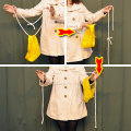 対角の端を結んでリング状にしたシルクをロープに通して、ロープの両端も結んでループにし、連鎖させた状態にします。「さて、どちらの結び目もそのままでロープからシルクを抜くにはどうしたらいいでしょう?」…「分かりませんか?ロープの真ん中を切れば簡単に外れます。」と、ロープの中程を切ってシルクを外して見せます。「えっ、シルクは抜けたけどロープが2つに切れてしまったじゃないかって…。ご心配なく。結び目を取ってしまえばロープは1本に戻ってしまうんです。」と結び目を切り落とすと、ロープは元の1本に戻っています。ロープの端を結んで輪にすることと、さらにシルクを使ってこれを外すというパズル風の演出にすることで、単なるロープ切りとはずいぶん違った印象のマジックになっています。さらに、この演技の前に演じると効果的な、ロープにシルクが出現する方法も解説してあります。。使用する特上シルクにマジック用の(R2210/R2211)約10m(ロープは消耗品です)を付けてお届けします。(シルクとロープの色は製品によって異なります)