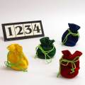 ギャンブル性のあるトリックはいつでも人気のあるものです。この「ジャックポット バッグ」はその中でもやさしくて、たいへん優れたアイディアのトリックです。まず4つの異なった色の布製の袋(口径7cm・深さ10cm)を示し、その中の1つに大当たり賞が入っていることを説明します。次に1から4の数字が書かれたボードを見せて、そのボードの裏に各数字が何色なのかを示した別のボードがあることを説明します。そして、3人のお客様にこのくじ引きに参加してもらい、1・2・3・4のうちの好きな番号を順に決めてもらいます。(フォースではありません)そこで番号のボードを開いてお客様の選んだ番号が何色かを確認し、その色の袋を渡して開けてもらいます。ところが3人とも袋の中に当たりは入っていません。残った番号と同色の袋をあなたが開けると、それが大当たりなのです。他にも誕生日等のプレゼントをあげるときに利用したり等、色々な演出が楽しめます。