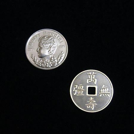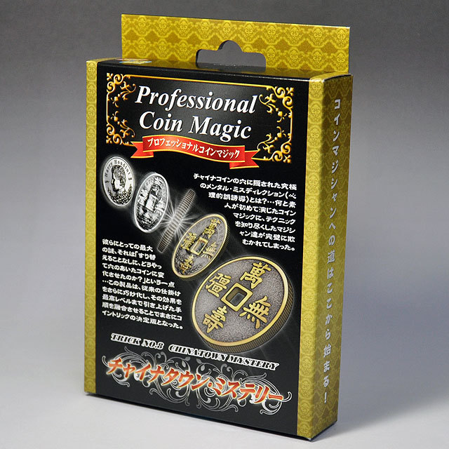 【補足】動画で使用されている「レギュラーフーディニーコイン」は、以下の製品を購入すれば一枚付属されているため入手できます。また、単品での扱いもございますので、必要に応じて追加ご購入下さい。<映像解説の「レクチャーDVD(チャイナタウンミステリー)」(