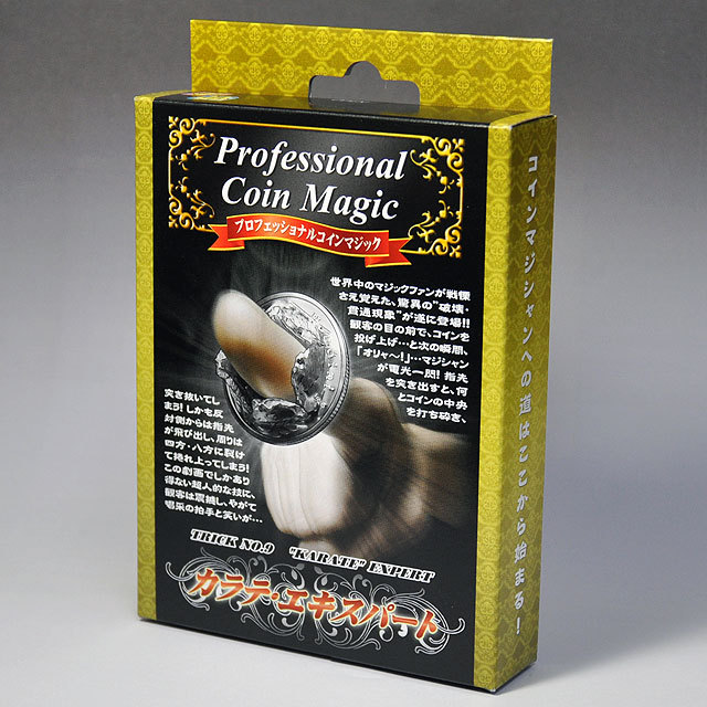 世界中のマジックファンが戦慄さえ覚えた、驚異の”破壊・貫通現象”が今ここに!! 観客の目の前で、コインを投げ上げ…と次の瞬間、「オリャ!」… マジシャンが電光一閃! 指先を突き出すと、何とコインの中央を打ち砕き、突き抜いてしまう! コインの反対側からは指先が飛び出し、周りは四方・八方に裂けて捲れ上ってしまう! この劇画でしかあり得ない超人的な技に、観客は震撼し、やがて喝采の拍手と笑いが…。今やマジック用のコインとして定着した「フーディニーコイン」を使用した、人気のマジック「プロフェッショナル コインマジック」シリーズの製品で、ギミックの特製フーディニーコインは、指が貫通したときの裂け方・めくれ上がったリアルな形状等、完璧なギミックコインに仕上げました。(ギミックコイン1枚とレギュラーコイン1枚付き)さらに、「アメージングバイト」(